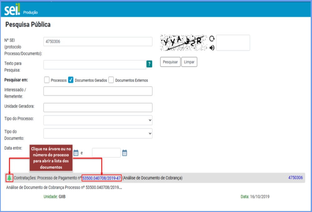 A forma mais fácil de encontrar um Processo ou Documento é pelo seu Protocolo SEI, composto por 17 números no caso de Processos e por 7 números no caso de Documentos.