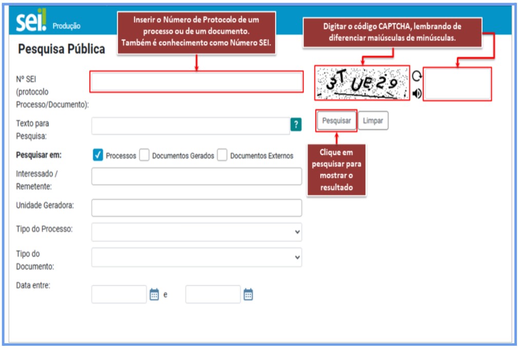 Qualquer pessoa pode realizar buscas no SEI, sendo ou não usuário cadastrado no sistema.