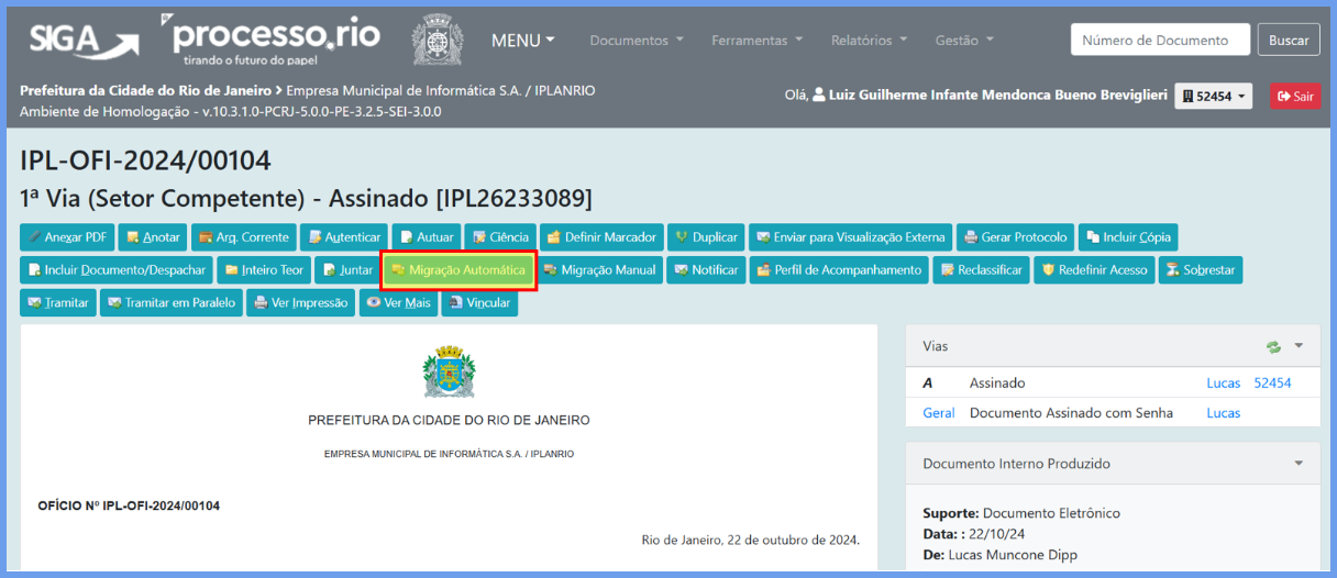 - O documento Certidão de migração completa é gerado no sei!rio e no processo.rio