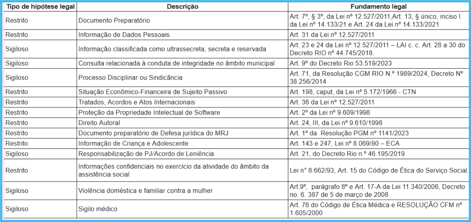 Requisitos para digitalizaçãoEtapas para criar um processo no SEIInício > 1. Migração de processos e expedientes do processo.rio para o SEI > Definição de hipóteses legais