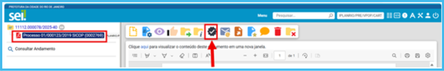 - No menu no sei!rio, selecionar “iniciar processo”;