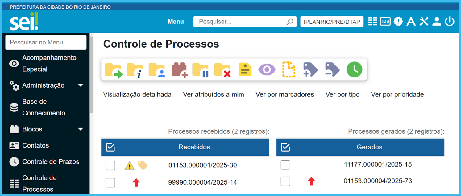 - Ver por prioridade – apresenta os processos da unidade ordenados pela prioridade.