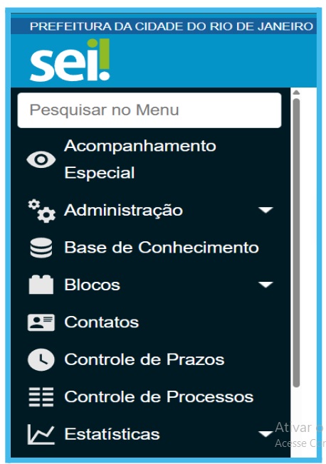 Consultar processos e documentosGrupos : Contatos, E-Mail, Envio, FederaçãoBase de ConhecimentoEstatísticasMenu de controleMenu do sistemaControle de processosPainel de ControlePrincipais ícones do sistema7. Relacionamento com usuário externo