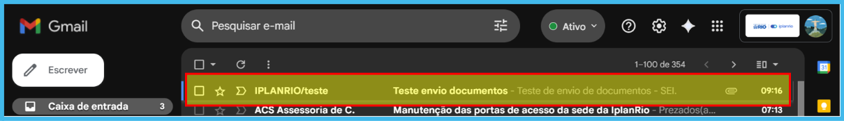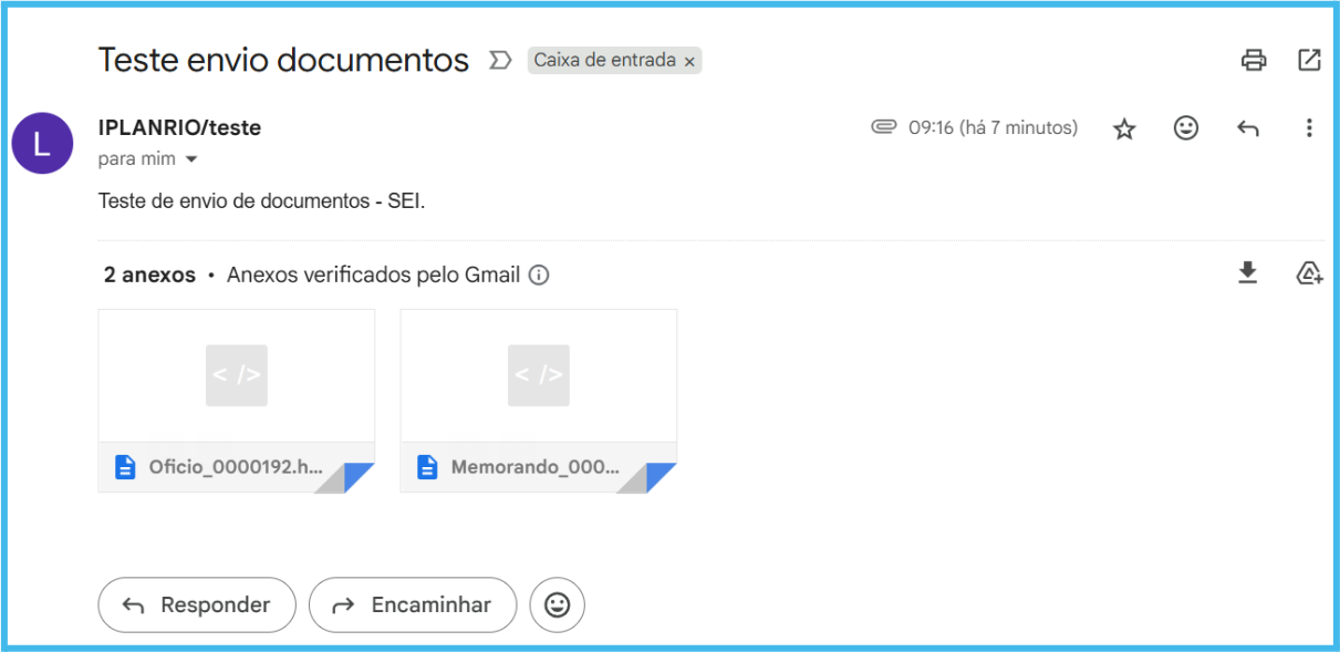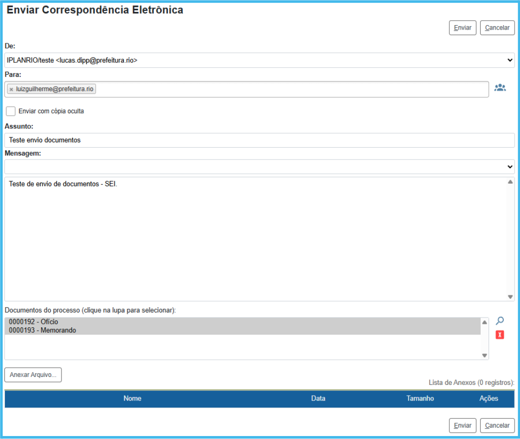 . Feche a tela ‘Selecionar Documentos’. Os documentos selecionados aparecem na janela de Envio de correspondência eletrônica.