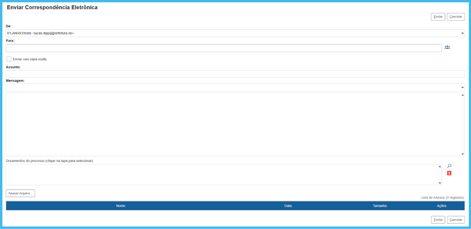 A tela ‘Enviar Correspondência Eletrônica’ será apresentada.