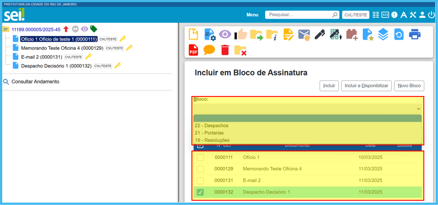 Incluir Documento em Bloco de Assinatura
