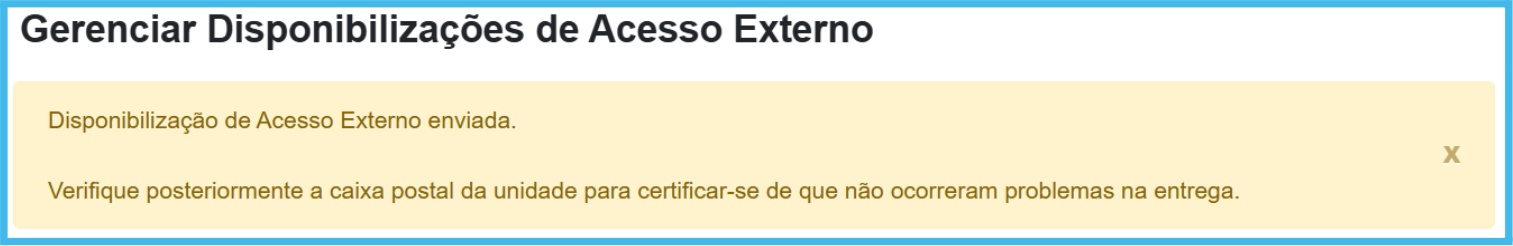 A tela ‘Gerenciar Disponibilizações de Acesso Externo’ é apresentada.