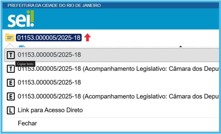 ao lado do número do processo. Conforme imagem abaixo, será disponibilizada a opção para que usuário copie o número do processo clicando no botão