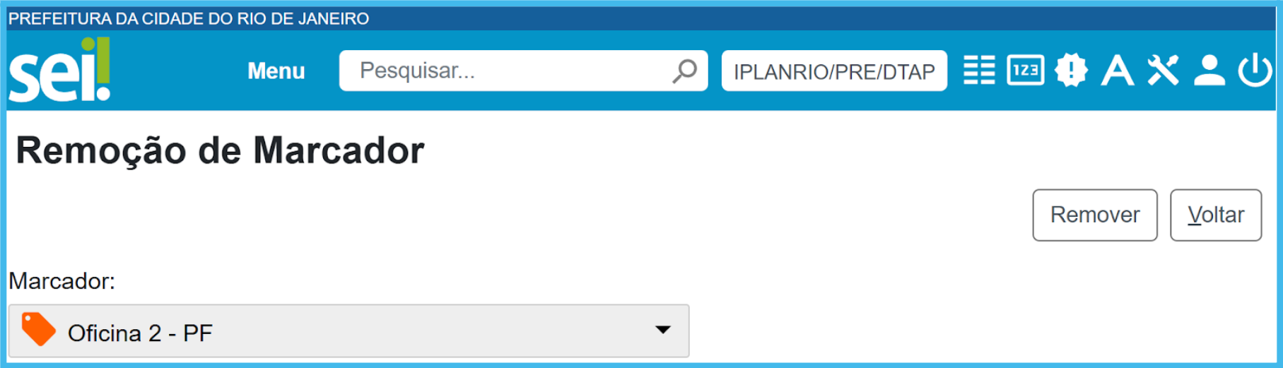 Na tela Controle de Processos, selecione o(s) processo(s) e clique no ícone ‘Remover Marcador’,