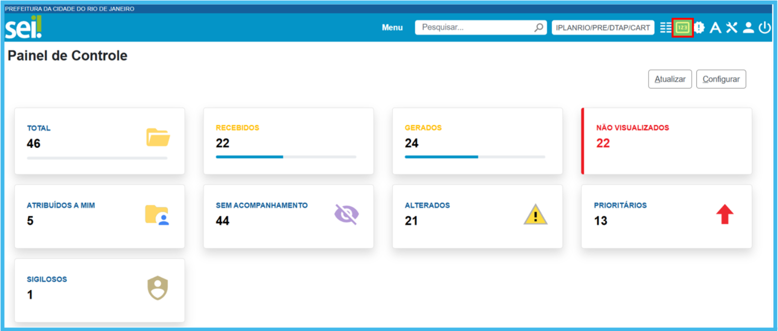 O Painel de Controle é uma funcionalidade que permite ao usuário ter outra forma de visão dos processos da unidade, e pode ser personalizada como página inicial no sei!rio.