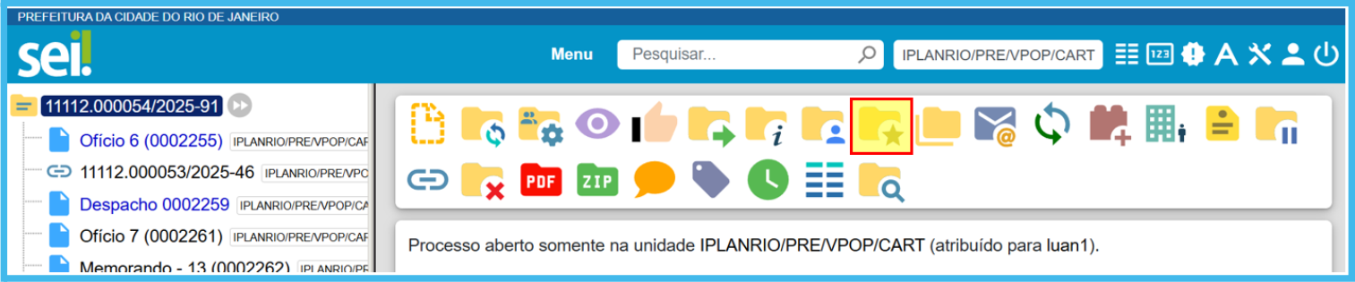 Acesse o processo e, na Barra de Ícones, clique no ícone