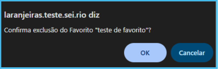 o documento escolhido. O sei!rio solicita a confirmação da exclusão pelo usuário, conforme pop-up abaixo.