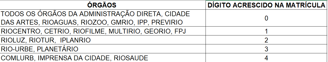- Para os servidores municipais é a matrícula registrada nos sistemas de Recursos Humanos (Ergon ou RHUPAG)