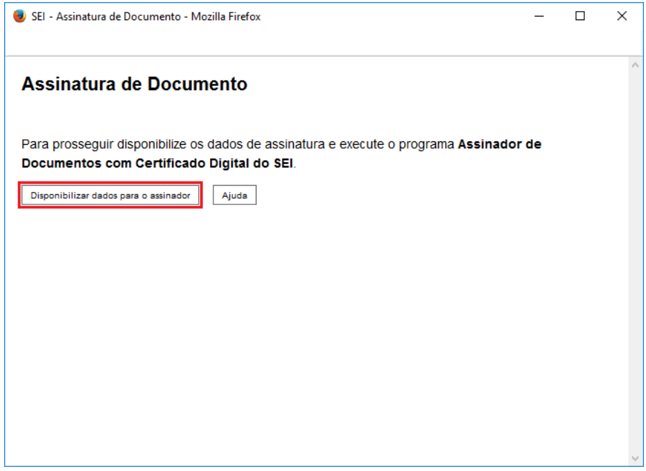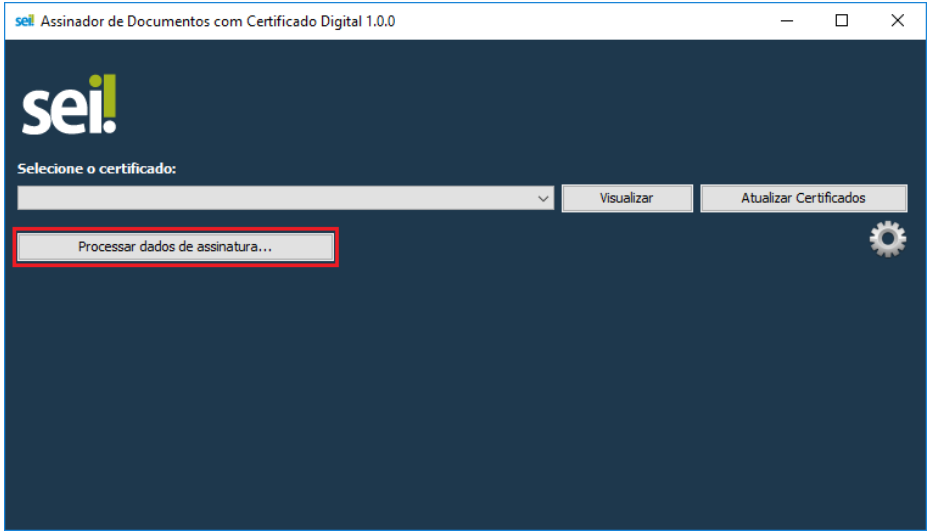 Em seguida, clique no programa Assinador de Documentos do SEI, instalado no computador, e solicite o processamento clicando no botão “Processar dados de assinatura”.