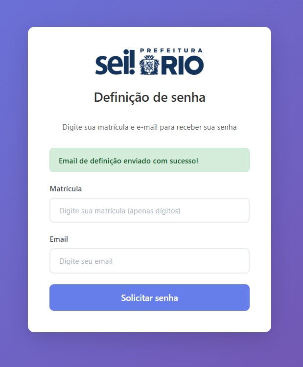 Se os dados estiverem corretos, um e-mail com link para definição da senha será enviado.