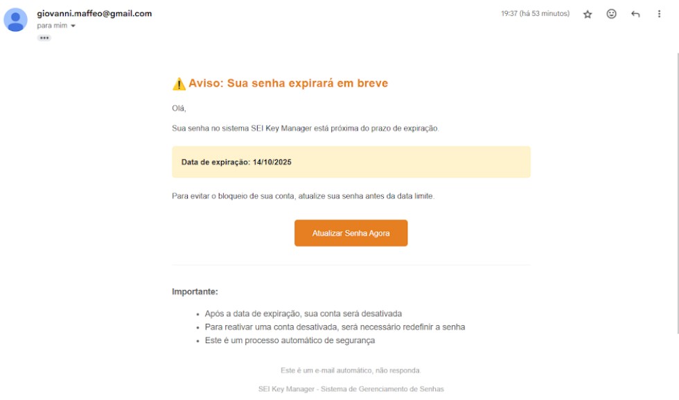 Um aviso de que a senha irá expirar será enviado por e-mail com 5 dias de antecedência, informando a data limite e orientações para troca de senha, conforme tela abaixo: