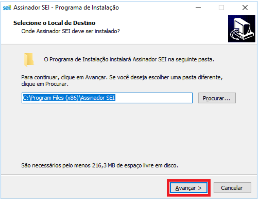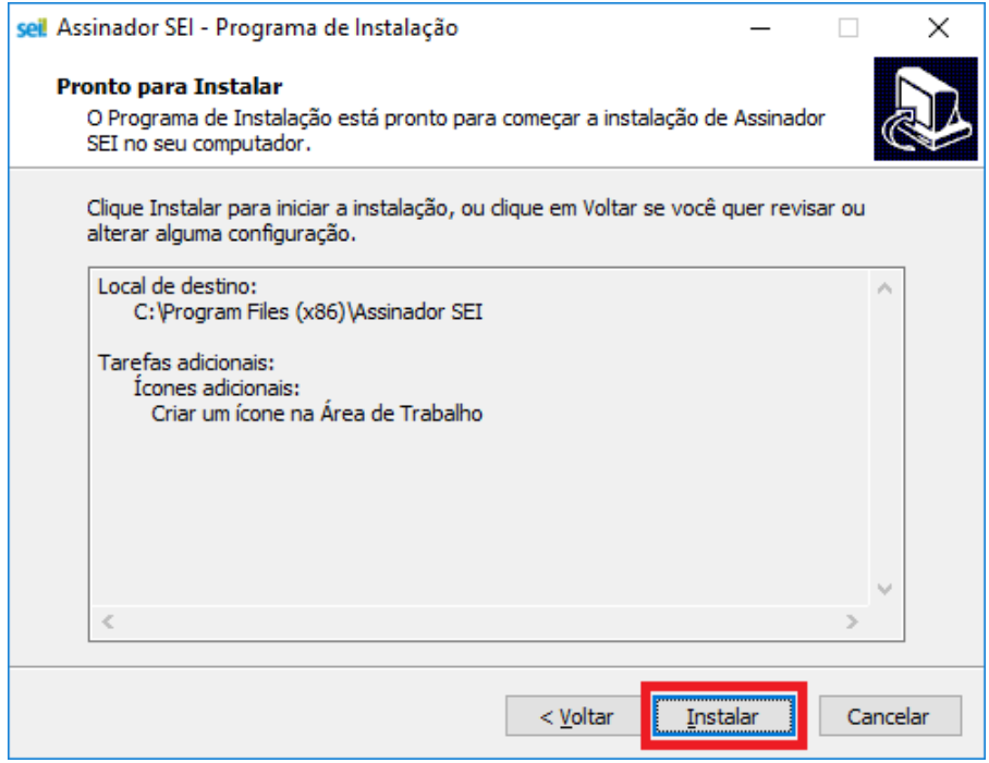 Instalador do programa "Assinador de Documentos com Certificado Digital do SEI"